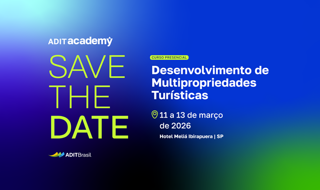 Entre os dias 11 e 13 de março de 2026, a ADIT Brasil realizará um curso de Desenvolvimento de Multipropriedades Turísticas, ideal para quem busca aprofundamento no negócio hoteleiro-residencial que movimenta bilhões de dólares, alinhado às tendências de economia compartilhada. As aulas acontecerão presencialmente no Hotel Meliá Ibirapuera, em São Paulo, em três dias intensivos […]