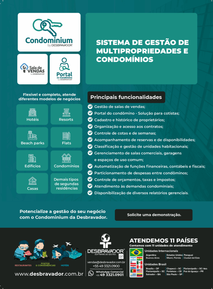 Um dos sistemas da Desbravador para o nicho de residências de férias é o Condominium, um software flexível e adaptável a diferentes modelos de negócios.